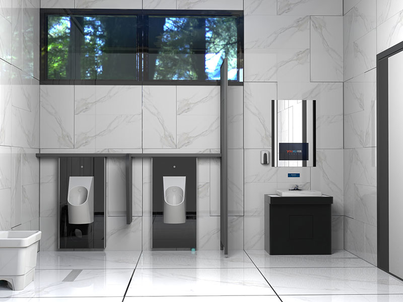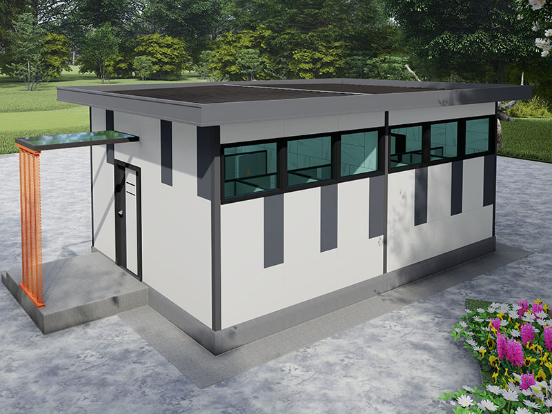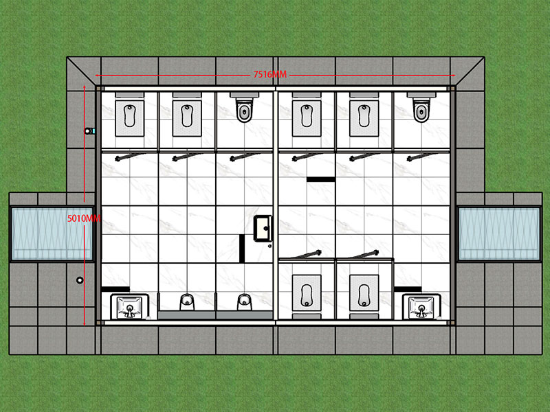 مصممة بحيث مقسمة إلى دورة مياه للرجال ودورة مياه للنساء، دورة المياه الجاهزة العامة ذات السقف المسطح S010-004 هذه ذات مساحة 37 متر مربع. دورة المياه هذه تتميز بالجدار الأبيض، السقف المسطح العصري، المظلة الزجاجية والسياج البرتقالي الذي يوفر بيئة مريحة للمستخدمين لحمايتهم من أشعة الشمس والمطر.