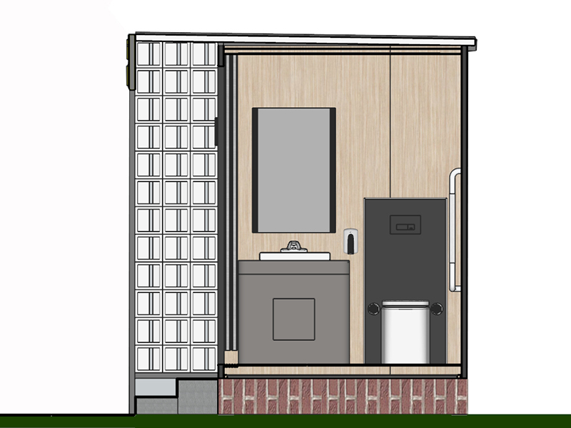 دورة مياه عامة جاهزة موديل JLCS-003، تغطي مساحة 6.5 متر مربع، ويمكن استخدامها كدورة مياه لكلاً من الرجال أو النساء. دورة المياه (التواليت) الجاهزة بجدار أبيض، سقف مسطح حديث وأسوار برتقالية، دورة المياه توفر بيئة مريحة للمستخدمين، وفي نفس الوقت حمايتهم من أشعة الشمس والمطر.