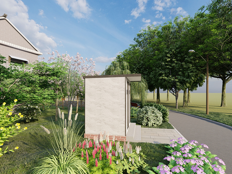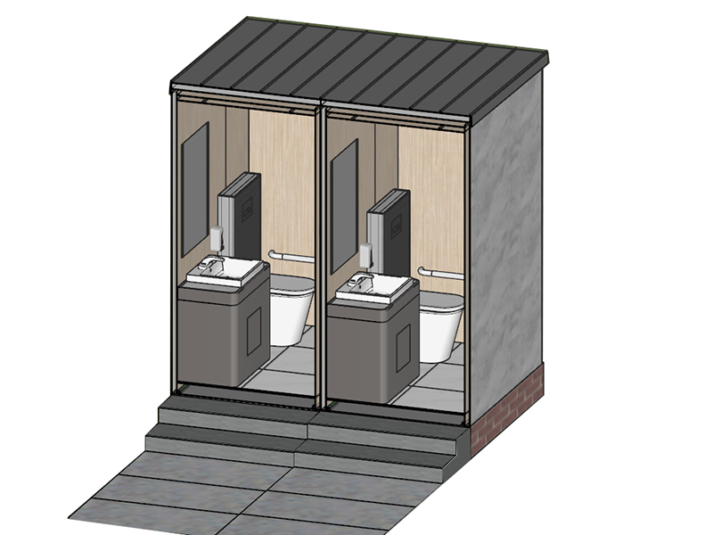 دورة مياه عامة جاهزة، JLCS-001 تغطي مساحة 2.5 متر مربع، ويمكن استخدامها كدورة مياه لكلاً من الرجال أو النساء. دورة المياه (التواليت) الجاهزة بجدار أبيض، سقف مسطح حديث وأسوار رمادية، دورة المياه توفر بيئة مريحة للمستخدمين، وفي نفس الوقت حمايتهم من أشعة الشمس والمطر.