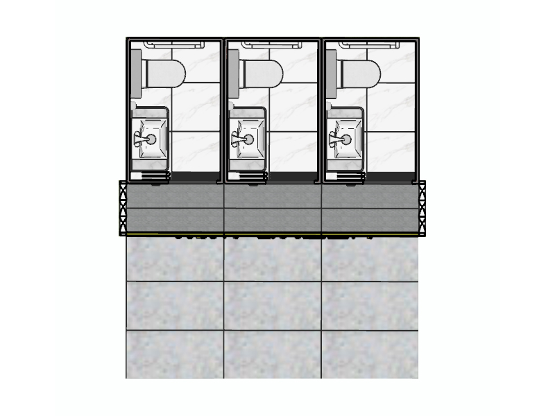المكونات القياسية: عدد 3 حوض غسيل للوجه واليدين للكبار، عدد 3 مرحاض آلي للكبار، عدد 3 مرآة مربعة