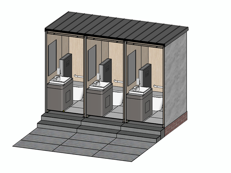 يمكن إعادة تدوير 80% من المواد، دورة المياه العامة الجاهزة هذه صديقة للبيئة وموفر للطاقة، ويمكن أن يستفيد من التهوية الطبيعية. نظراً لصغر حجمه، فإن دورة المياه الجاهزة هذه مناسب للاستخدام في المناطق ذات المساحة المحدودة، مثل المباني الإدارية، السفن السياحية، اليخوت، ملاعب الجولف، حدائق الأحياء السكنية الصغيرة، ملاعب المدارس والمتنزهات الترفيهية.