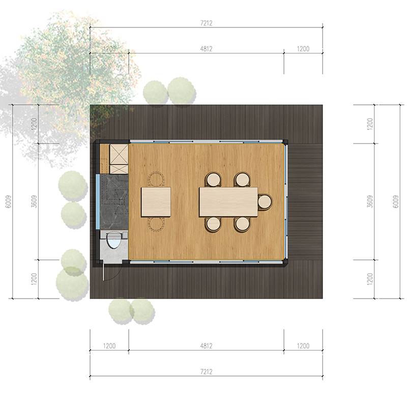 - الأبعاد الخارجية: 6×7.2×3.5 متر